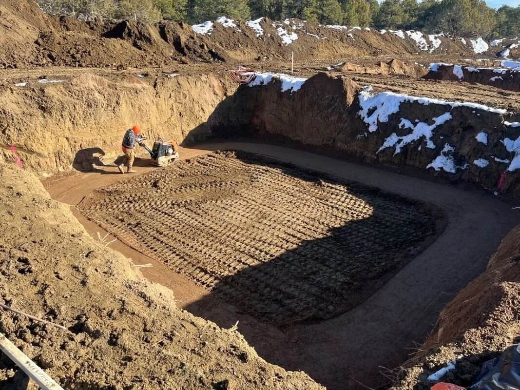 With building permits now in hand, we have been able to begin installing foundations for Phase 2 homes. This is a critical step in the homebuilding process because any movement or issues with the foundation can affect the house built on top of it in many (expensive) ways. This is a primary concern for us in southwest Colorado as much of our land here consists of clay-rich expansive soils. These soils swell when wet and shrink when dry and those fluctuations can put an immense amount of pressure on the structure above it leading to sticking doors, uneven floors, cracks in the drywall and even cracks in the concrete foundations.