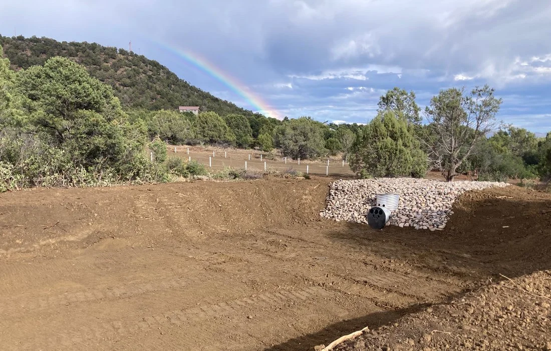 A summer rain and late afternoon sun gave us a rainbow over our new storm water detention pond.